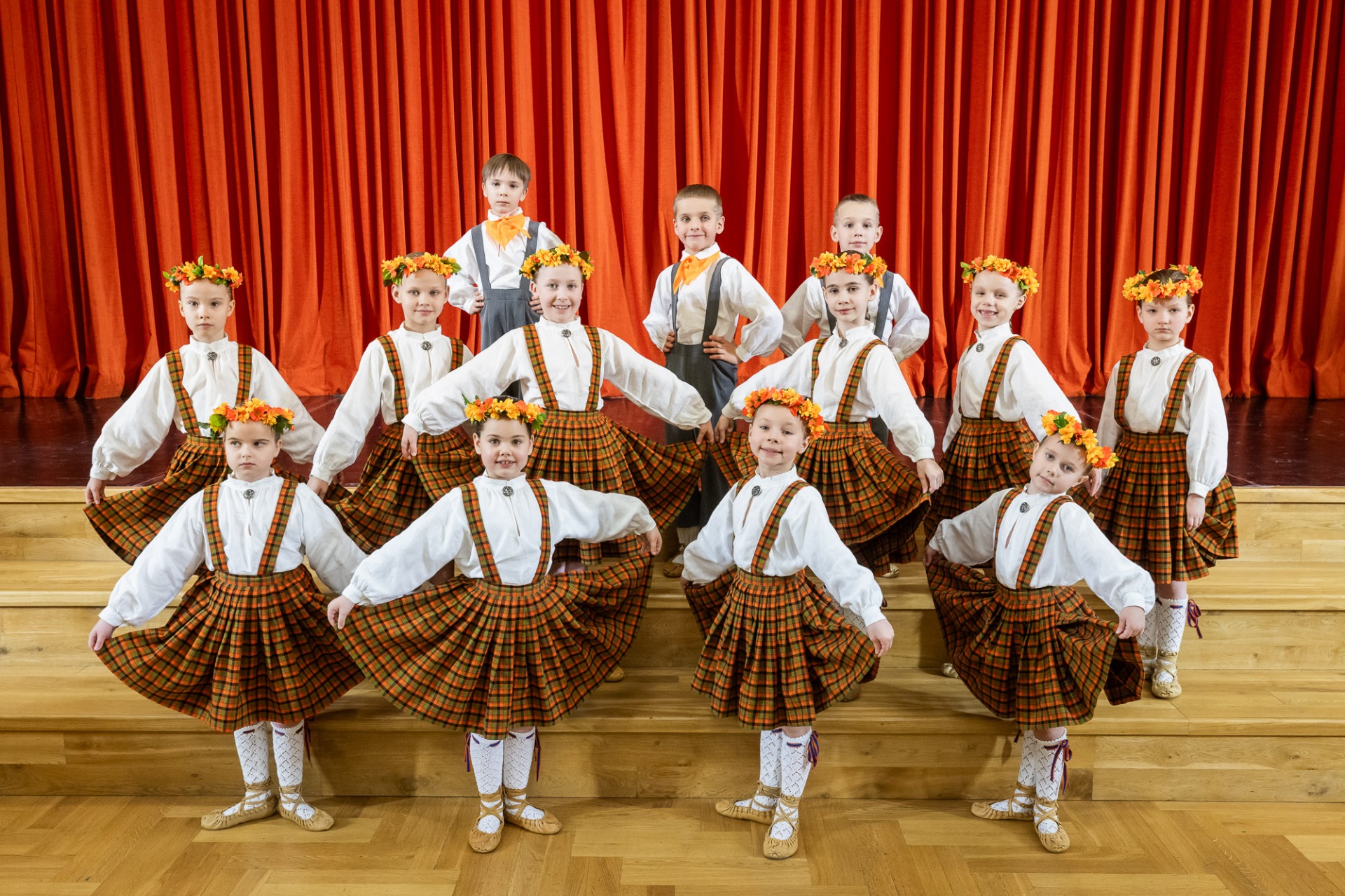 Zilā grupa pulcē 1. klašu dejotājus — zinātkārus, smaidīgus un enerģiskus bērnus, kuri sper savus pirmos nopietnākos soļus tautas dejas pasaulē. Šeit viņi mācās deju ritmu, soļu precizitāti un kustību saskaņu, vienlaikus saglabājot rotaļīgumu un prieku, kas piemīt bērnībai.
